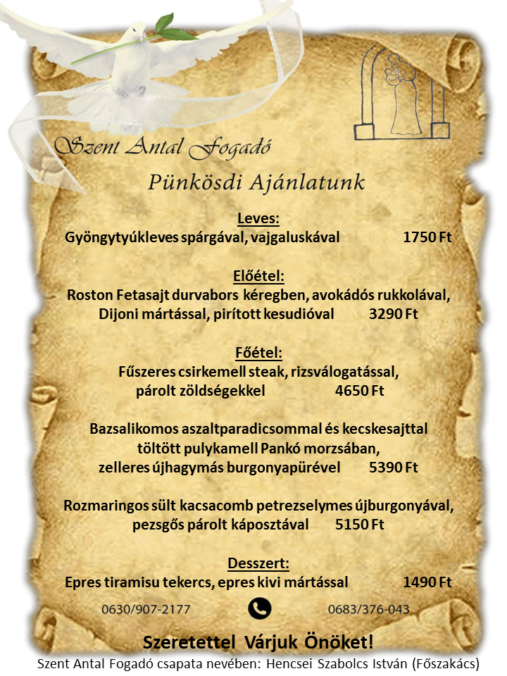 Bangó Sándor – zalabéri révén ismerve, – romjaiban is hangulatosnak és alkalmasnak találta azt étterem és fogadó kialakítására. Megvásárolta, és megkezdte a 7 évig tartó felújítást. Az első elgondolások szerint csak az épület került volna felújításra, a Szent Antal szobrot is tartalmazó homlokzat az eredeti formájában, belül pedig egy kisvendéglő és 2 vendégszoba. Eztán folyton – folyvást jöttek az új és új ötletek: nagy kerthelyiség, a hagyományos gesztenyefákkal, a kerthelyiségbe tekéző … És eljött 1998 tavasza amikor már nagyon itt volt az idő a nyitásra. 1998. június 13-án – Szent Antal napján – kinyitottunk!
